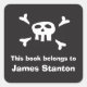 Personalised kids bookplates featuring a white cartoon skull on a black background and the text "This book belongs to [Name and Surname]". Great for tagging your kids school books.