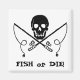 The classic Jolly Roger skull and crossbones, but with crossed fishing poles. Captioned, "Fish or die!".