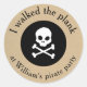 A prize sticker for a pirate themed party. The design has 'I walked the plank' written across the top with a skull and crossbones jolly roger in the centre. This would be perfect for anybody hosting a pirate themed party or treasure hunt that wants to celebrate with special prizes for party games or to use as favours in party bags.