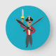 The clock did not take as long to arrive as I thought it might and was extremely well packaged. I didn't do the measurements so I didn't realize it is a little smaller than the average clock but that does not matter (just make sure you check if that's important to you).It is really nifty! It seems very solid and well made not flimsy at all. It has been going well and has kept good time in its few weeks on my wall. Nice product. Gets noticed too! Nicer in real life than the picture but true to the picture