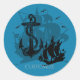 Pirate Ship & Anchor Black Silhouette 2 Classic Round Sticker