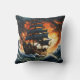 Pirate Ship Battling Stormy Seas at Sunset Cushion