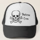 Great for "Talk LIke a Pirate Day" on September 19th! A pirate's skull and crossbones marks the front of this hat along with the words, "Skeleton Crew." Is it really true that there are undead pirates who turn into skeletons in the moonlight? Hats are available in a variety of styles and colours.