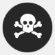 This is a fun sticker to give out to kids. It features a pirate skull and cross bones.