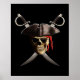 Pirate skull, eye patch, pirate hat, and two crossed swords for a classic Jolly Roger.