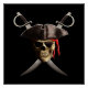 Pirate skull, eye patch, pirate hat, and two crossed swords for a classic Jolly Roger.