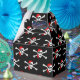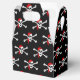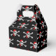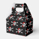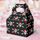 Party favour box shown in black in a gable style with a cute pirate skull print.
