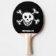 Personalised name or monogram ping pong paddle for table tennis Sports game gift idea for men women and kids. Pirate skull design with cross bones. Custom background colour. Fun for player and coach.