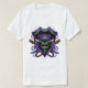 This design is a pirate skull with a menacing grin. The pirate is wearing a purple hat with a black and purple jacket. There is a pair of crossed swords behind the pirate skull. There are ropes going around the skull as well in the background. There is purple smoke around the skull adding to the menacing jolly roger.