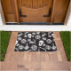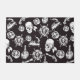 White graphics of skulls & pirate elements on black background, seamless repeat pattern