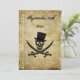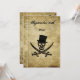 A classic Jolly Roger, with optional top hat, and Rackham crossed swords on an antique decorated paper with a grunge look and room for all your custom invitation details in pirate talk!