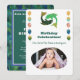 This “Photo Edition” Pisces invitation features a hand-painted impressionist fish duo with shimmering gold glitter accents on a clean white background. Your child’s photo is beautifully showcased in a unique organic frame, surrounded by festive balloon pillars.
