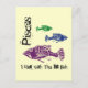 Check out our cool Pisces inspired postcard! Design features fish in green, blue and purple with text: PISCES I Roll With The BIG Fish!