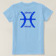 Pisces zodiac symbol with "pisces" inside in blue on the back, and a circular "Planet Zodiac" symbol in gold on the front.