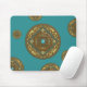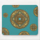 This Pisces themed mandala features an aquamarine stone surrounded by the symbol for the sign, the constellation, and the alchemical symbol for Water among filigree and weaves.
