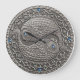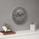 10.75” round acrylic wall clock with an image of a pewter Pisces medallion. The eyes of the fish are blue topaz, as are the 12, 3, 6, and 9 markers. See the entire Gemstones & Medallions Clock collection in the HOME section.