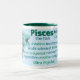 A lovely zodiac sign mug, with a cute graphic and a description of the sign Pisces.