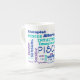 This mug is imprinted with a Bach Solos Suite for Cello. It was purchased as a thank you gift for a professional cellist friend who often performs this work. The cup is made of a high-grade ceramic and is fairly light. The walls are not too thick and it is a small to medium size. It's well finished, has a high-gloss glaze, and looks very elegant. The Bach Solo Suite score on the example I received was clear and had high contrast. Even though the staffs were small, the music was easy to read. The cellist who received this cup immediately knew what the music was as soon as she set eyes on it.