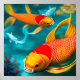 A design I made with an AI (Artificial Intelligence) program! The artwork of two orange koi fish swimming underwater is a beautiful representation of Pisces astrology. The orange colour of the koi fishes symbolises courage and strength, which is a quality that Pisces people possess. The movement of the fish underwater is symbolic of the Pisces' natural ability to adapt to different environments and circumstances. The two fish represent the duality of the Pisces sign, showing the Pisces' capacity for both logic and emotion. With its vibrant colours and gentle movements, this artwork is a stunning representation of the Pisces sign.