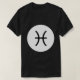 Pisces symbol in black. NB This design can be customised the motif appears as a simple black symbol on light shirts, or as a black symbol in a white circle on dark shirts.