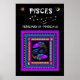 Beautiful cool colours make this unique poster featuring a cartoon version of the "Twin fish" (the zodiac symbol for Pisces,) plus the constellation for the birth-sign of the same name, along with the birth dates range for that sign as well. Among their many positive personality traits Pisces are known for being romantic, mystical, compassionate and intuitive.