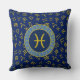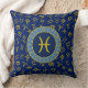 Pisces Zodiac+Astrology Symbols Pattern Gold+Blues Cushion