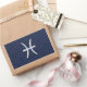 A silver chrome like Pisces Zodiac symbol on a navy blue carbon fibre style design texture print background. A modern urban racy design for a great custom birthday gift idea.