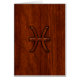 A Pisces Zodiac Sign rendered in a Mahogany wood grain style design print background. A classic design for a great custom birthday gift idea.