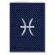 A chrome like Pisces Zodiac Sign on a navy blue carbon fibre style design texture print background. A modern urban racy design for a great custom birthday gift idea.
