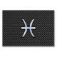A chrome like Pisces Zodiac Sign on a black carbon fibre style print background. A modern urban racy design for a great custom gift idea.