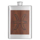 Pisces Zodiac Sign Rich Mahogany wood grain style Hip Flask