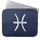 Pisces Zodiac Symbol Navy Blue Carbon Fibre Print Laptop Sleeve