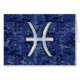 A silver chrome like Pisces zodiac sign on a navy blue digital camouflage design print background. A modern urban racy design for a great custom birthday gift idea.