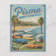 Capture the nostalgic charm of California’s coast with this retro Pismo Beach design featuring colourful vintage trailers, classic cars, and a scenic ocean view. Perfect for fans of mid-century travel, beach lovers, and classic Americana art that celebrates the freedom of the open road and sunny coastal getaways.