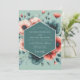 Embrace a moody and romantic aesthetic with this stunning artistic design. The painterly composition features deep teal anemones and vibrant coral poppies, creating a dramatic contrast against a soft pistachio green backdrop. This elegant botanical artwork is perfect for a sophisticated, modern affair.