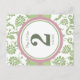 Unique Victorian Vintage Damask Pistachio Clover Pastel Green and Rose Petal Table Number Card