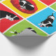 Classic black and white pit bull enjoying herself at home, on wrapping paper.