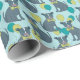 Wrap up birthday gifts in style with this handsome pup. This dapper dog is wearing a pair of teal coloured glasses and a lime green bow tie and surrounded by coordinating balloons against a light blue background.