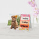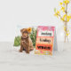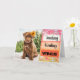Such a cute and adorable get well card to make someone feel better featuring a pit bull with bright orange flower on its head along with a watercolor floral border and three coloured stripes with the words "SENDING" "HEALING" "VIBES" on the front on a pink and orange textured background. Inside the card reads "Get well soon". Words on both the front and inside can either be left as is or personalise it and add your very own.