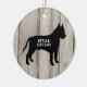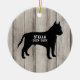 Pit Bull rustic wood ceramic ornament with cute silhouette against a faux wood background. Personalise with your dog's name and the year. You could also use this as a memorial ornament but changing year to birth/death years. Other breeds and patterns are available in our shop (see collection link for other breeds/colours) and let me know if you cannot find your breed: info@lemontreecards.com