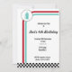 All little boys go crazy over cars. This retro themed 'pit lane' invitation is a perfect way to set the scene for a boy birthday bash. Featuring racing stripes, fuel pump and chequered flag.