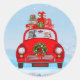 Pitbull Dog In Car With Santa Claus Classic Round Sticker