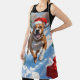 Pitbull Dog Running in Snow with Christmas Hat Apron