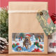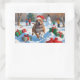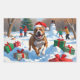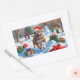 Pitbull Dog Running in Snow with Christmas Hat Rectangular Sticker