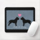 Two Pitbull silhouettes in love and sharing a heart. Customise text for a personalised touch.