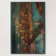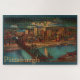 Large puzzle with a vintage image showing downtown Pittsburgh by moonlight in 1931. The view is of the Monongahela River, a railroad bridge spanning it and the buildings of downtown lit at night.