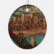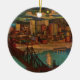 Vintage postcard showing downtown Pittsburgh by moonlight in 1931 with a view of the Monongahela River, a railroad bridge spanning it and the buildings of downtown lit at night. Reprinted on this beautiful Christmas ornament.