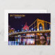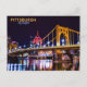 Nightlights and skyline of the beautiful Pennsylvania city shine in this Pittsburgh by night postcard. The bridge, river and colourful lights reflection shine in the foreground while the city lights in the background give us a hint of the beauty of Pittsburgh's buildings. Great postcard to add to your cities by night collection.