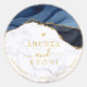 PixDezine H2 Blue Agate + Marble Faux Gold Heart Classic Round Sticker