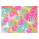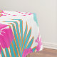 PixDezines aloha hibiscus pattern in orange, pink, and blue (adjustable) with DIY background colour. We layered with a collage of rainforest foliage.. monstera leaves, palm fronds, ti leaves and banana leaves. This bright and colourful cotton tablecloths is perfect for everyday luau celebration.
